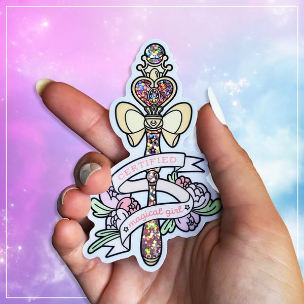 Certified Magical Girl Glitter Holo Round Sticker